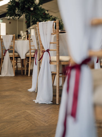 Another way to dress the gorgeous chiavari chair, gold cheltenham chair or wooden cross back chairs is a chiffon drop. White is the classic look for this and then you can add your theme colour in with ribbon or even a flower or a stem of eucalyptus. Colours available in a range of colours - most popular at the moment include sage green, dusky blue, burnt orange and lavender.